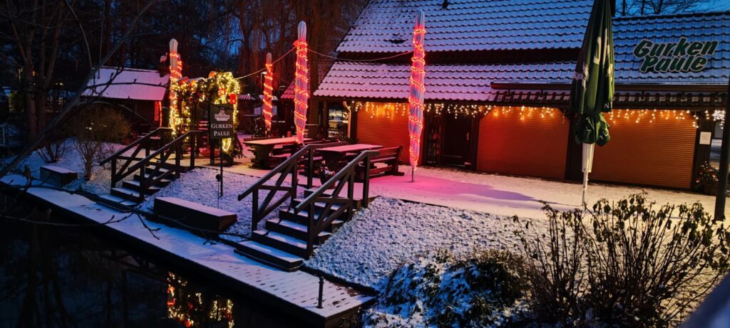 Seit den frühen 1990er-Jahren steht Gurken Paule auf der Schlossinsel Lübben. Die Spreewaldgurke ist eine kulinarische Spezialität und wird traditionell eingelegt. Doch nicht nur Gurken sorgen für das leibliche Wohl, sondern jetzt auch ein kleines Imbissangebot, leckere Quarkbällchen und lwohltuende heiße Getränke.